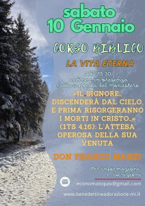 | SABATO 10 GENNAIO ore 15.30 | CORSO BIBLICO |