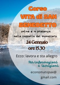 | SABATO 20 DICEMBRE ore 15.30 | corso CULTURA MONASTICA sulla VITA DI SAN BENEDETTO |